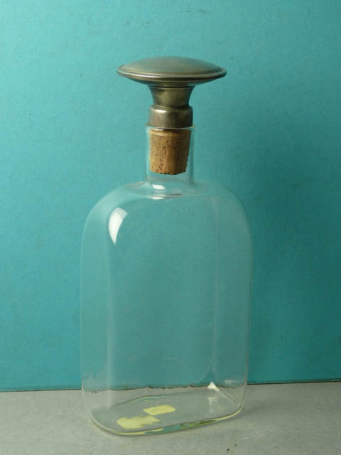 PLAIN GLASS SPIRIT DECANTER WITH SILVER FLAT TOP STOPPER 23 CM HIGH