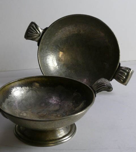 PLANISHED SILVER TWO HANDLED BOWL / CUP 7/i DIAM.