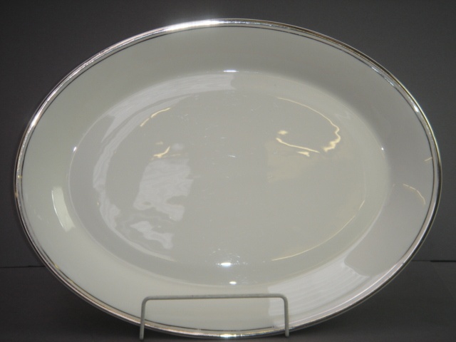 PLATINUM CONCORD ROYAL DOULTON LARGE OVAL PLATTER WHITE CHINA WITH SILVER BAND 42 CM DIAM. (X3)