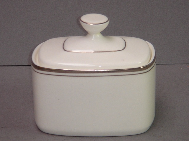 PLATINUM CONCORD ROYAL DOULTON SUGAR BOX WITH LID WHITE CHINA WITH SILVER BAND (X6)