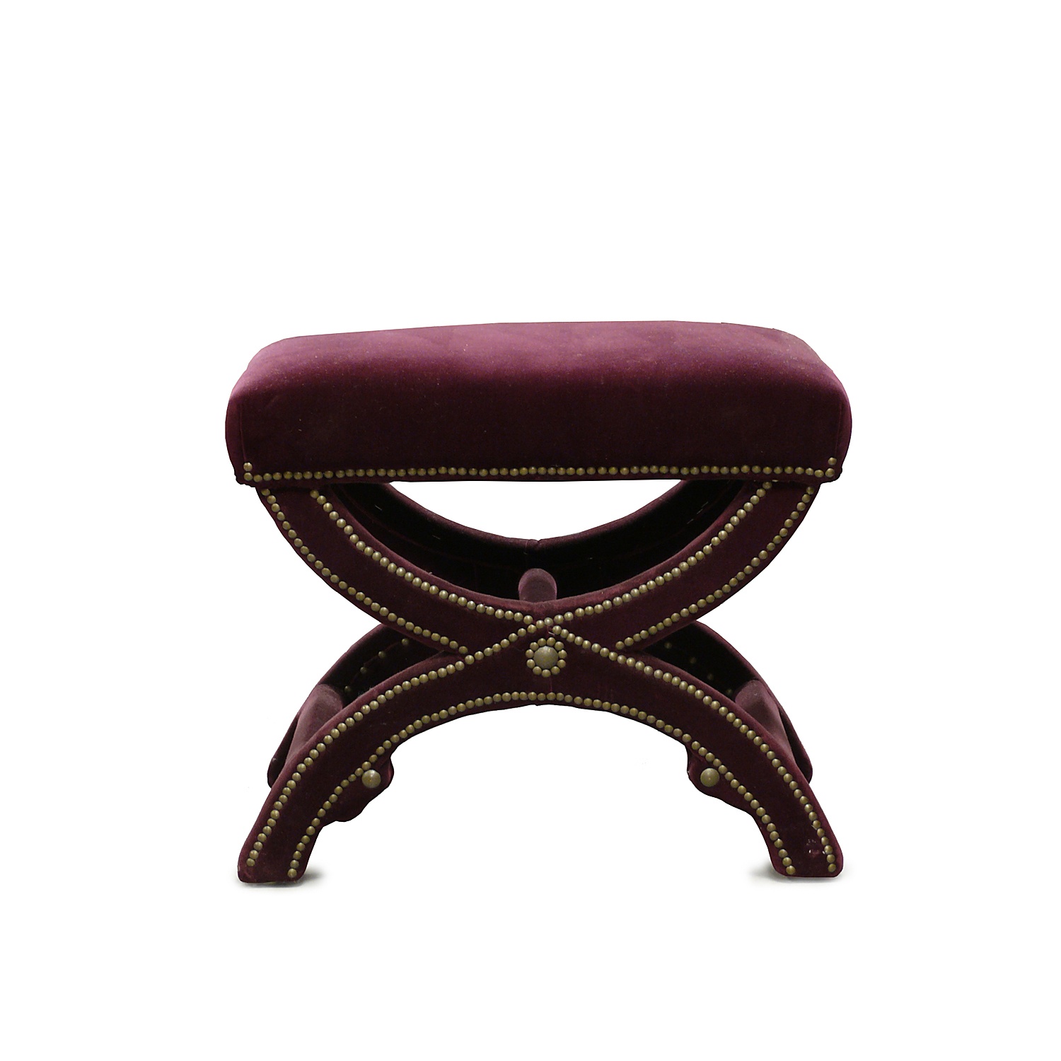 PLUM VELVET UPHOLSTERED X FRAME STOOL