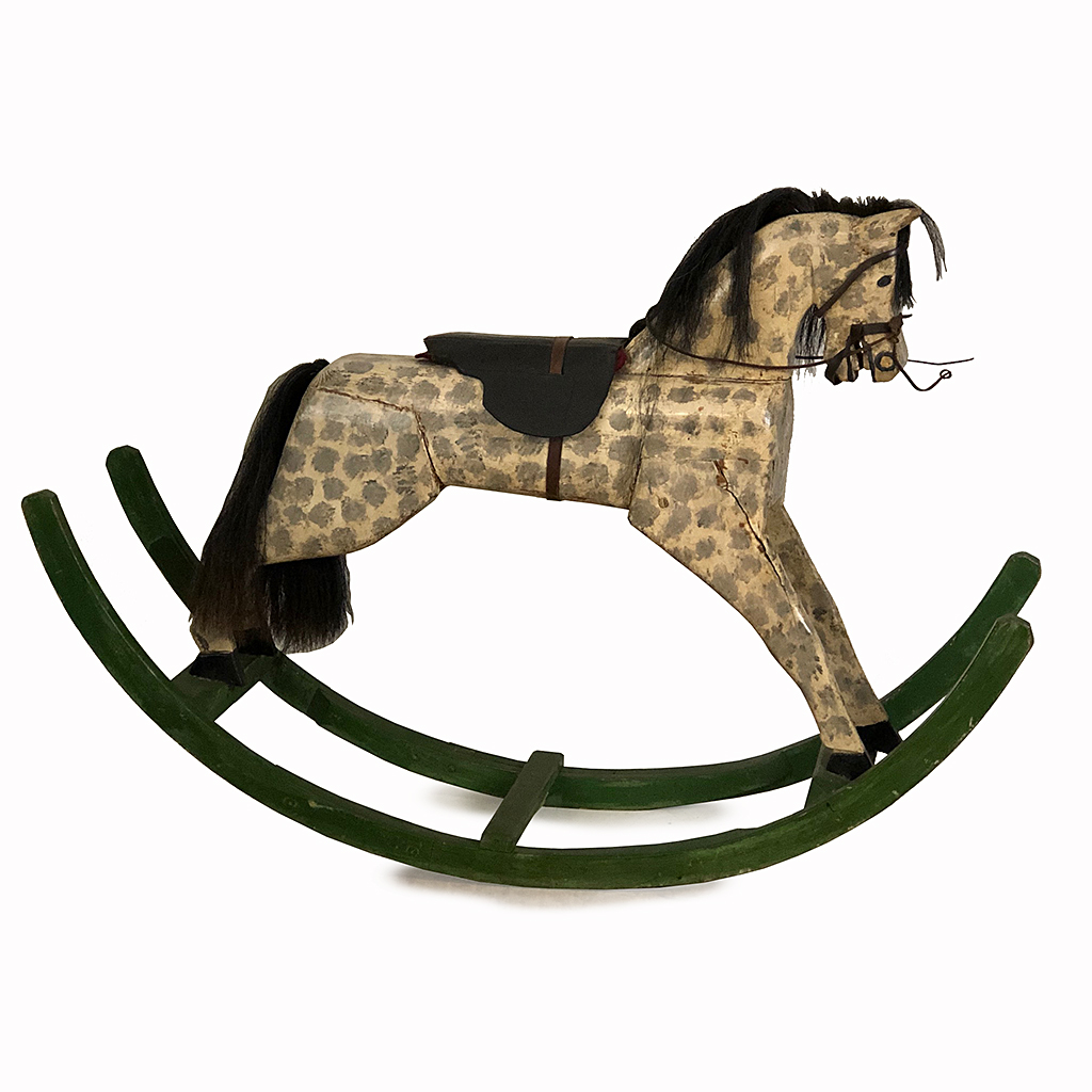 PRIMATIVE CHILDS ROCKING HORSE DAPPLE GREY WITH GREEN HOOP ROCKERS