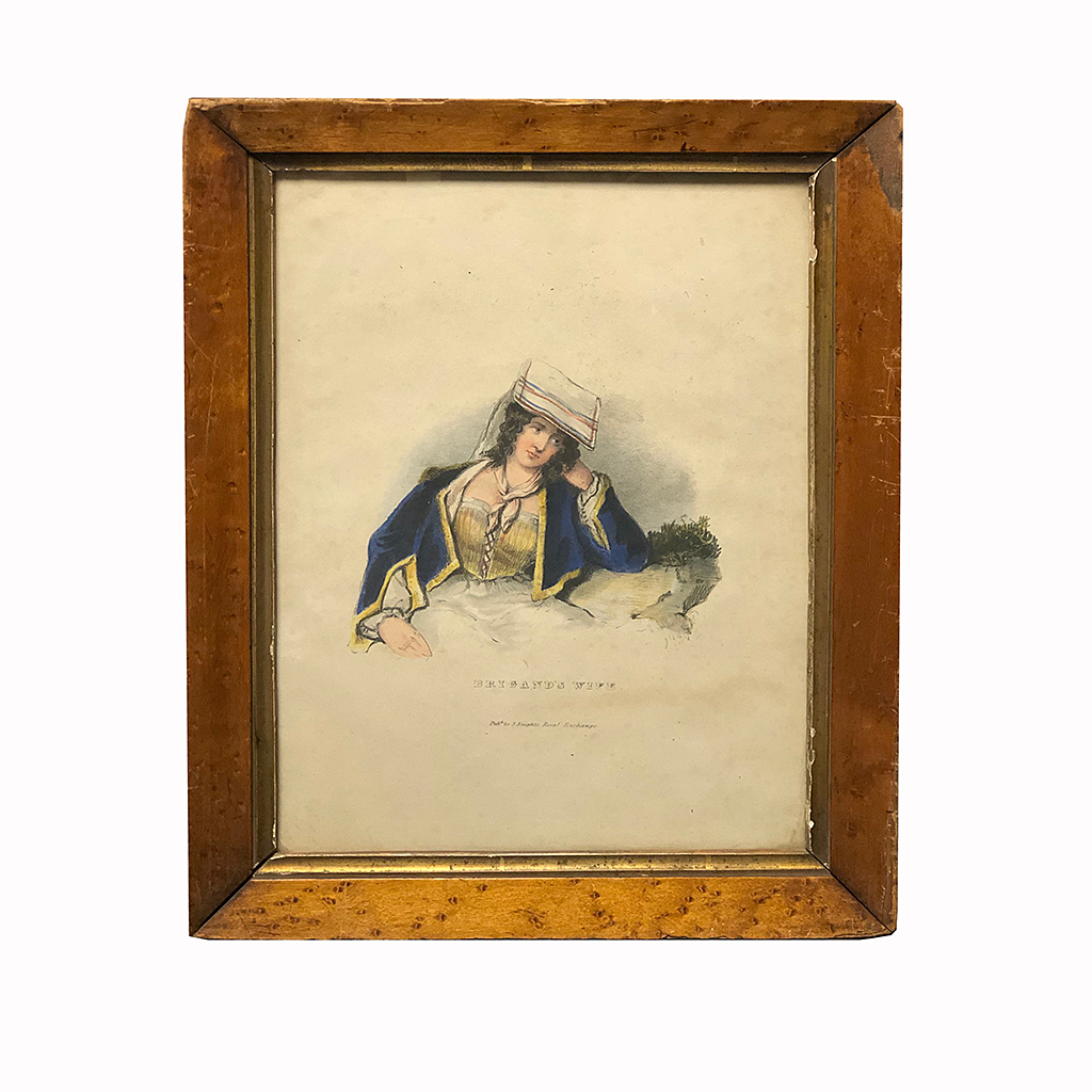 PRINT COLOURED PORTRAIT BRIGANDS WIFE IN A MAPLE FRAME 11/i X 9/i
