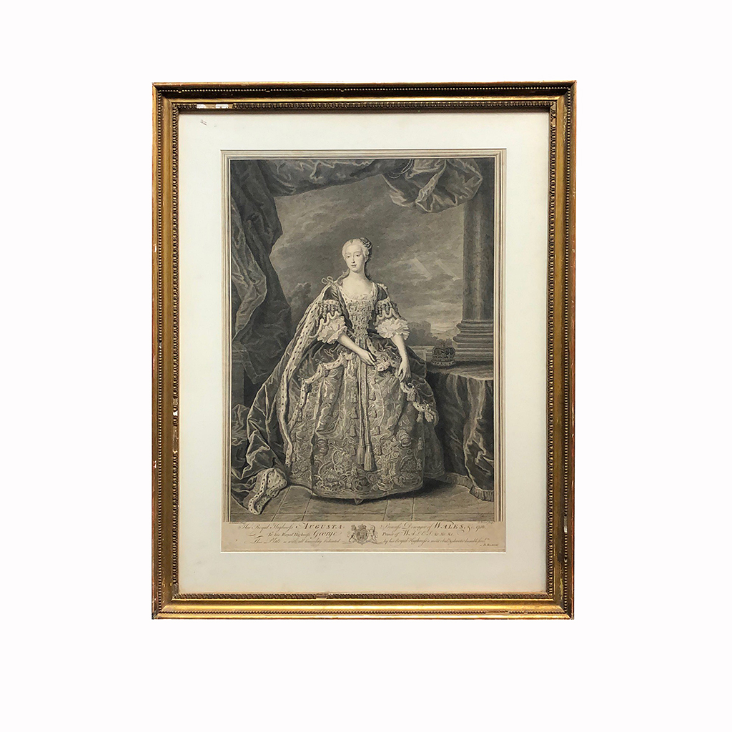 PRINT ENGRAVING OF HRH AUGUSTA BY B BARON IN A BLACK AND GILD HOGARTH FRAME 27 X 20