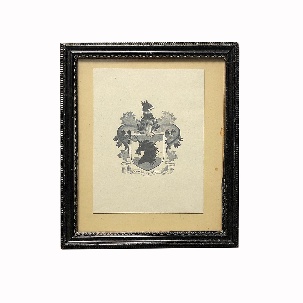 PRINT HERALDIC COAT OF ARMS AUDAX ET FIDUS IN A BLACK FRAME 9/i X 7/i