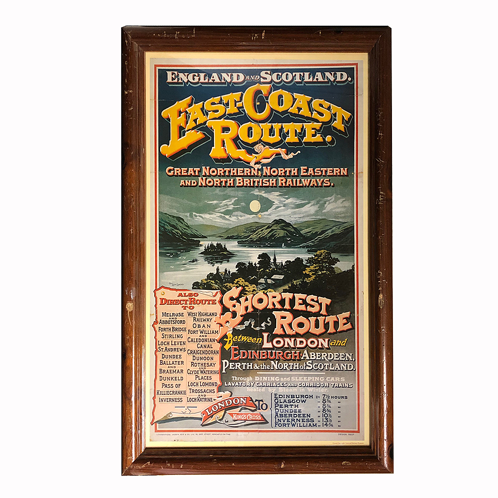 PRINT RAILWAY POSTER /iEAST COAST ROUTE/i IN A DARK WOOD FRAME