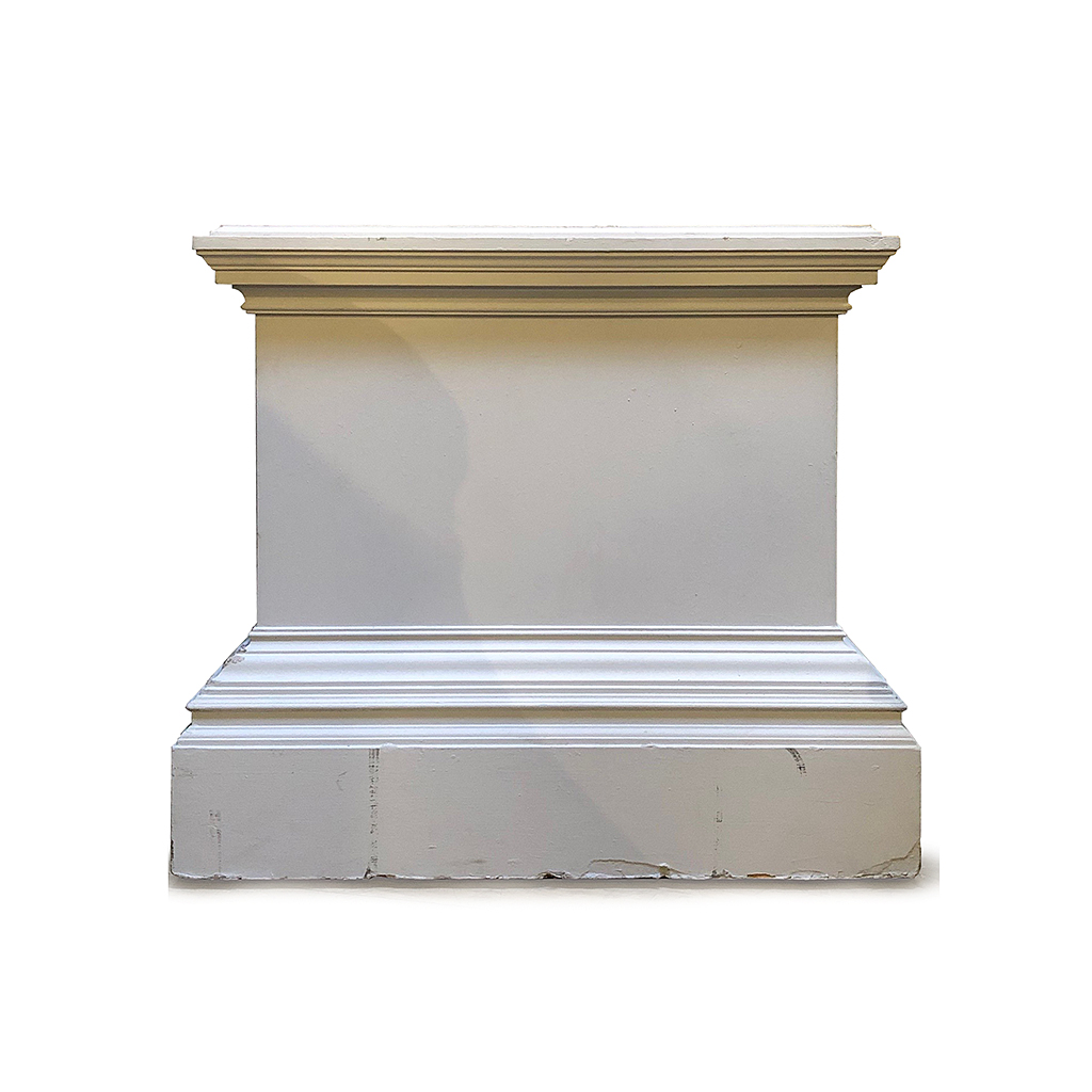 LARGE PAINTED WOOD PEDESTAL / PLINTH (FOR STATUES) WITH HEAVY MOULDINGS TOP AND BOTTOM STONE COLOUR 91 CM HIGH 93 CM WIDE 93 CM DEEP (X3)