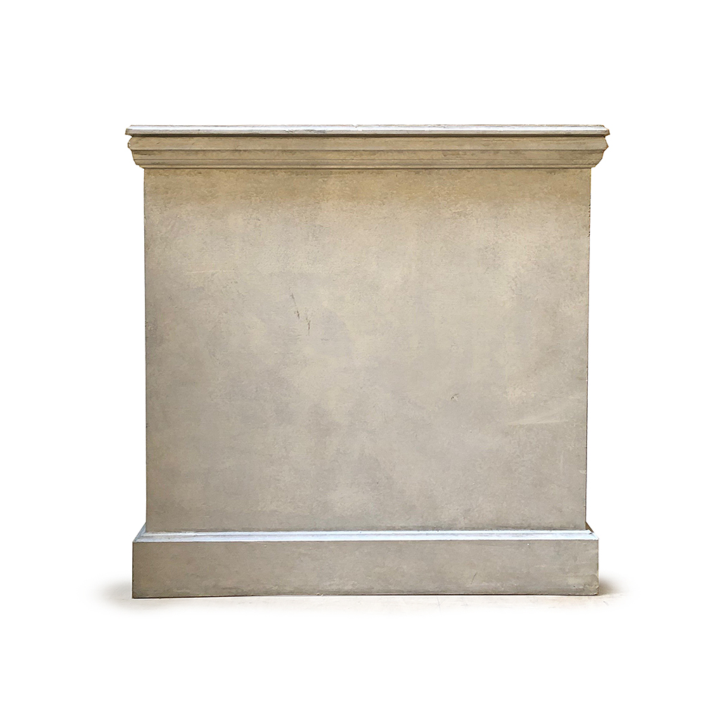 PAINTED WOOD PEDESTAL / PLINTH WITH MOULDINGS TOP AND BOTTOM STONE COLOUR 98 CM HIGH 89 CM WIDE 64 CM DEEP