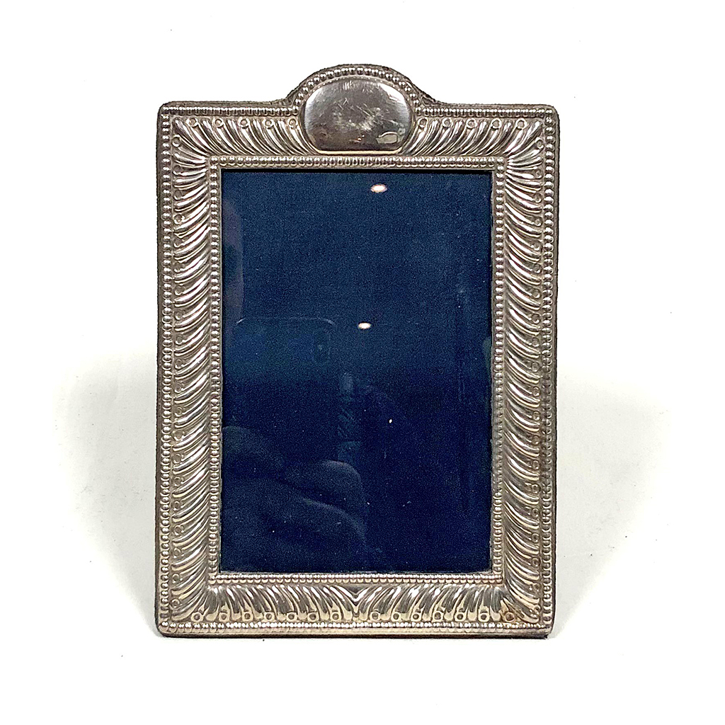 MEDIUM SILVER DECORATIVE PHOTO FRAME WITH GADROON BORDER 19.5 CM HIGH 14 CM WIDE