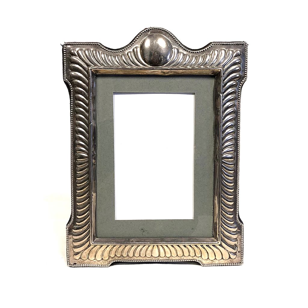 LARGE SILVER PHOTO FRAME WITH CADROON AND BEAD BORDER DECORATION 30 CM HIGH X 23 CM WIDE
