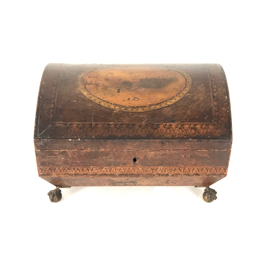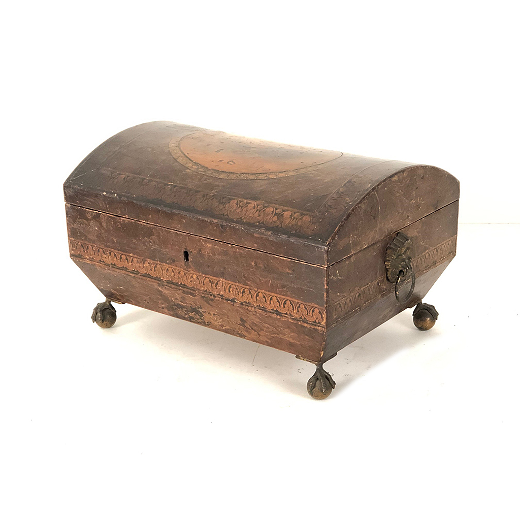 REGENCY CASKET / BOX WITH AN ARCHED LID ORMOLU HANDLES AND LION PAW FEET 18 CM HIGH 28 CM LONG 25 CM DEEP