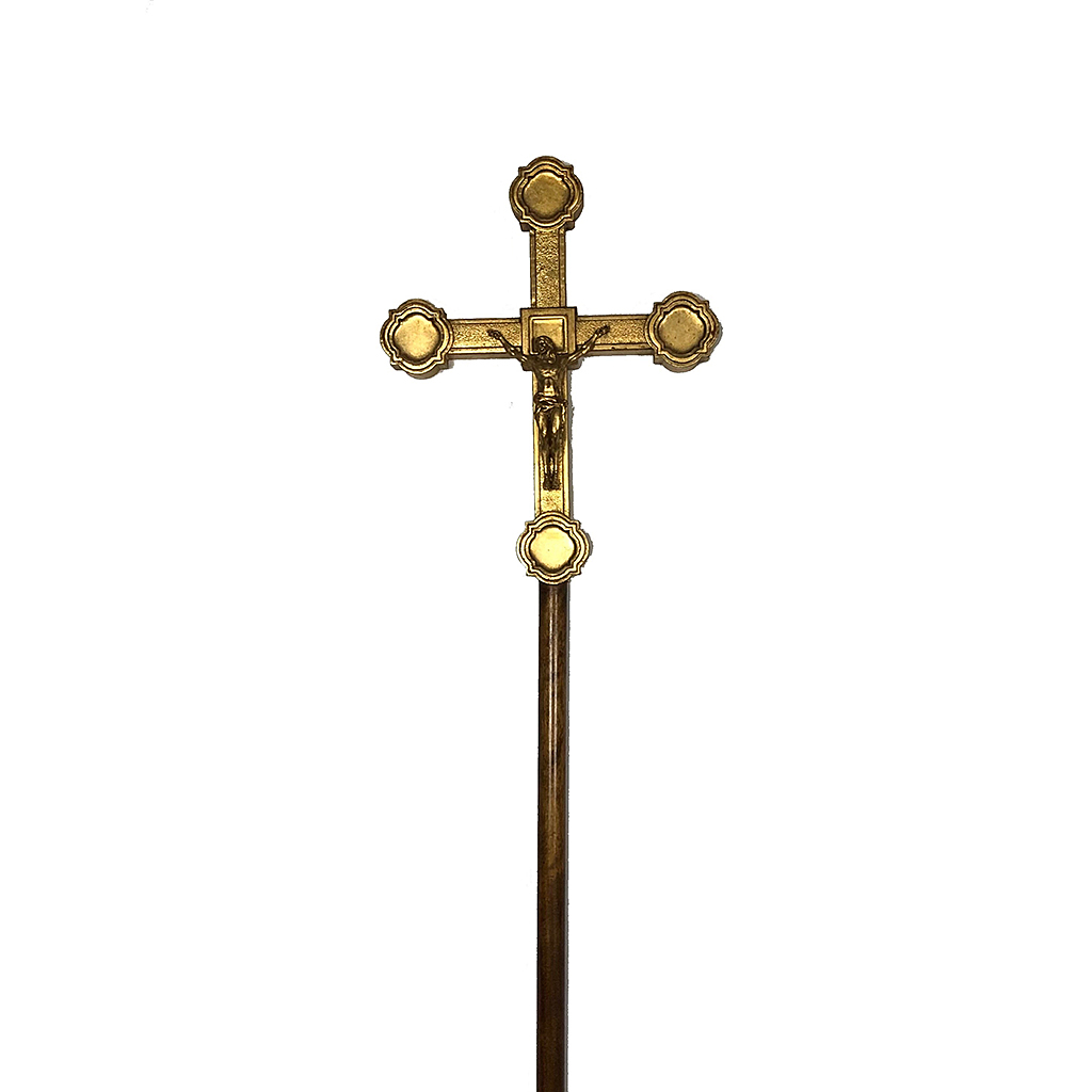 LARGE REPLICA RESIN AND GILT CRUCIFIX ON WOOD POLE 200 CM LONG