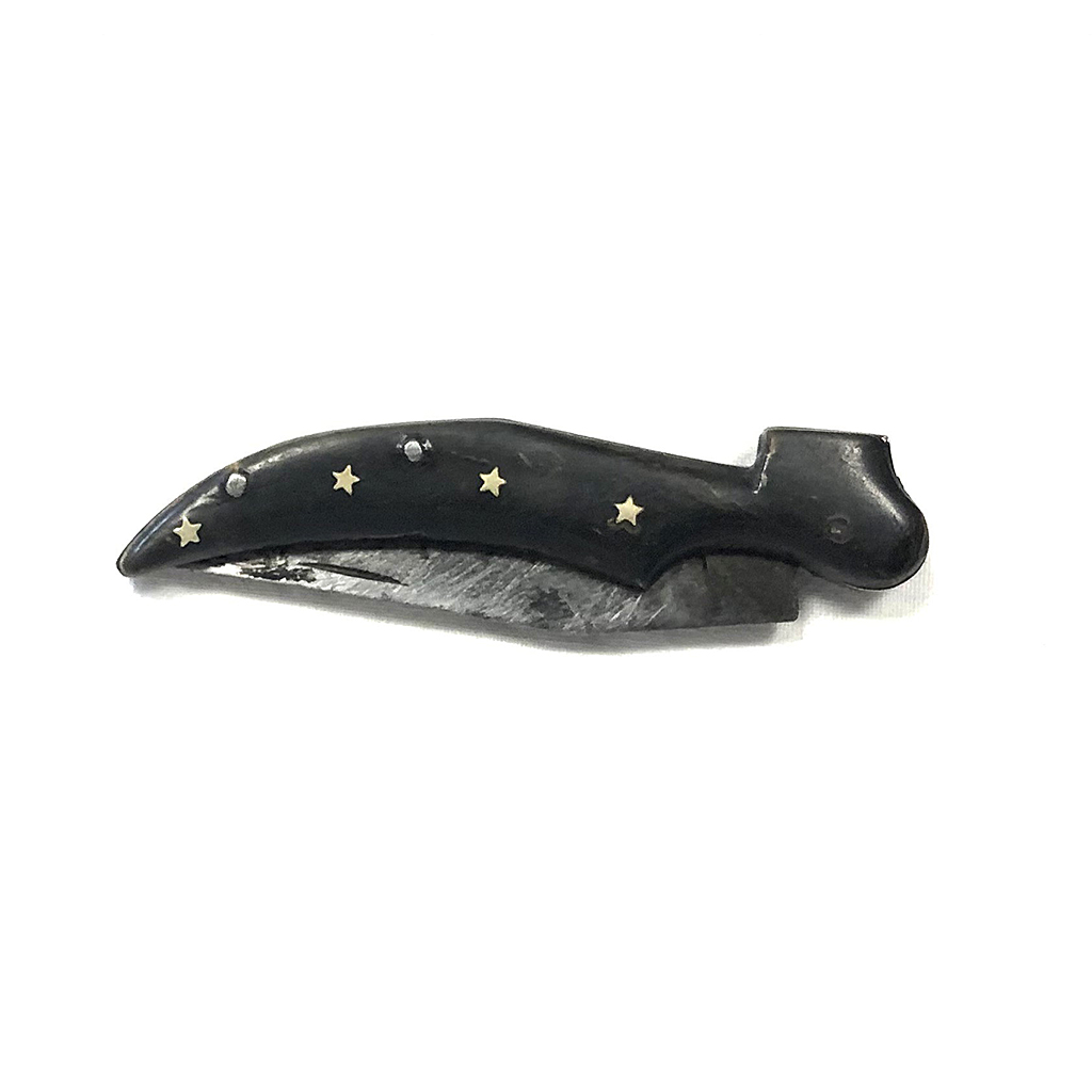 HORN PEN KNIFE SHOE SHAPE WITH INLAY GOLD STARS DECORATIONS 8 CM LONG