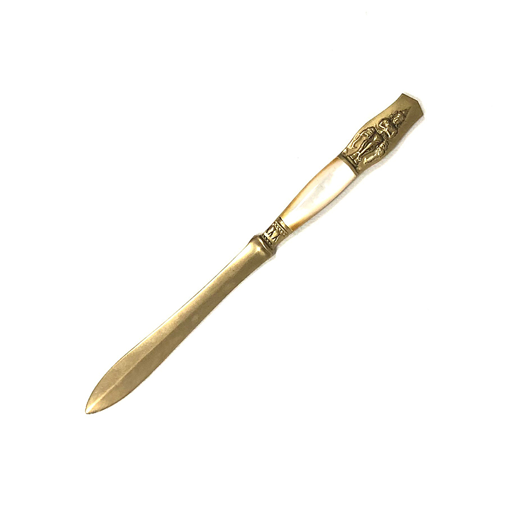BRASS AND MOTHER OF PEARL LETTER OPENER / PAPER KNIFE 180 CM LONG