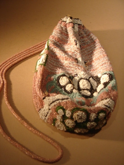 PURPLE BEADED SOFT HANDBAG 13 CM WIDE