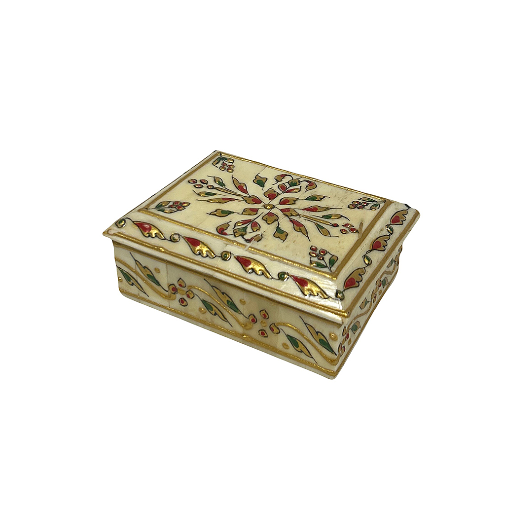 RECTANGULAR CREAM BOX WITH GOLD PAINTED FLORAL DECORATION 10 CM X 7.5 CM X 4 CM HIGH