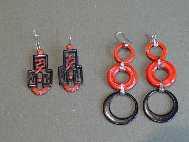 RED AND BLACK BAKELITE DROP EARRINGS