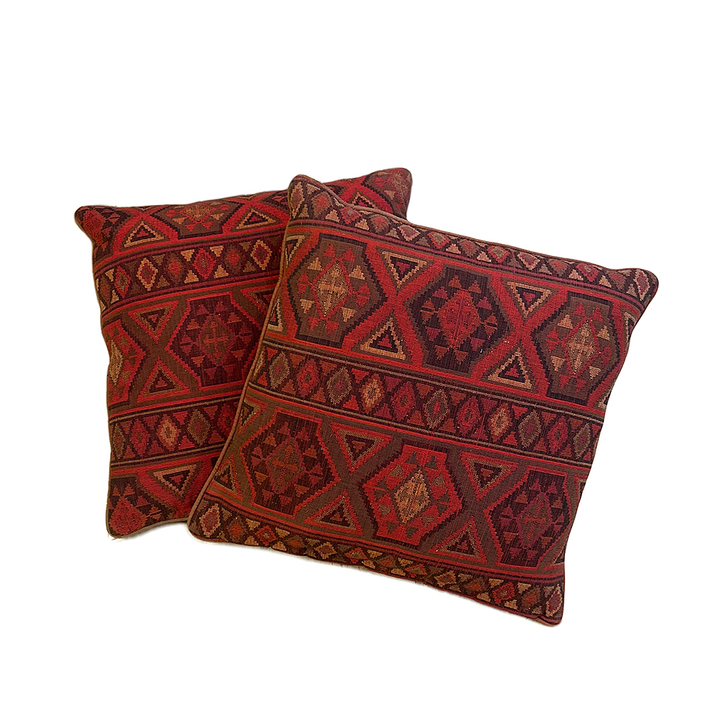 RED ANTIQUE KELIM / ETHNIC CUSHION WITH GEOMETRIC DESIGNS 50 CM X 50 CM