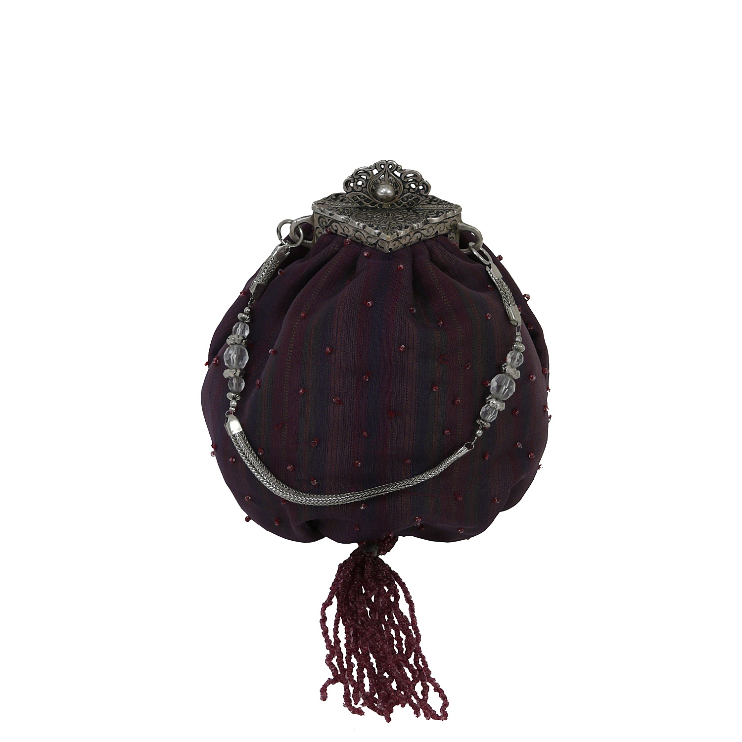 RED BEADED POUCH BAG WITH UNIQUE CLASP TASSEL AND HANDLE AS LISTED