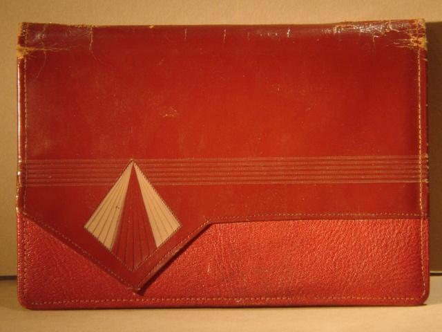 RED LEATHER CLUTCH HANDBAG 20 CM WIDE