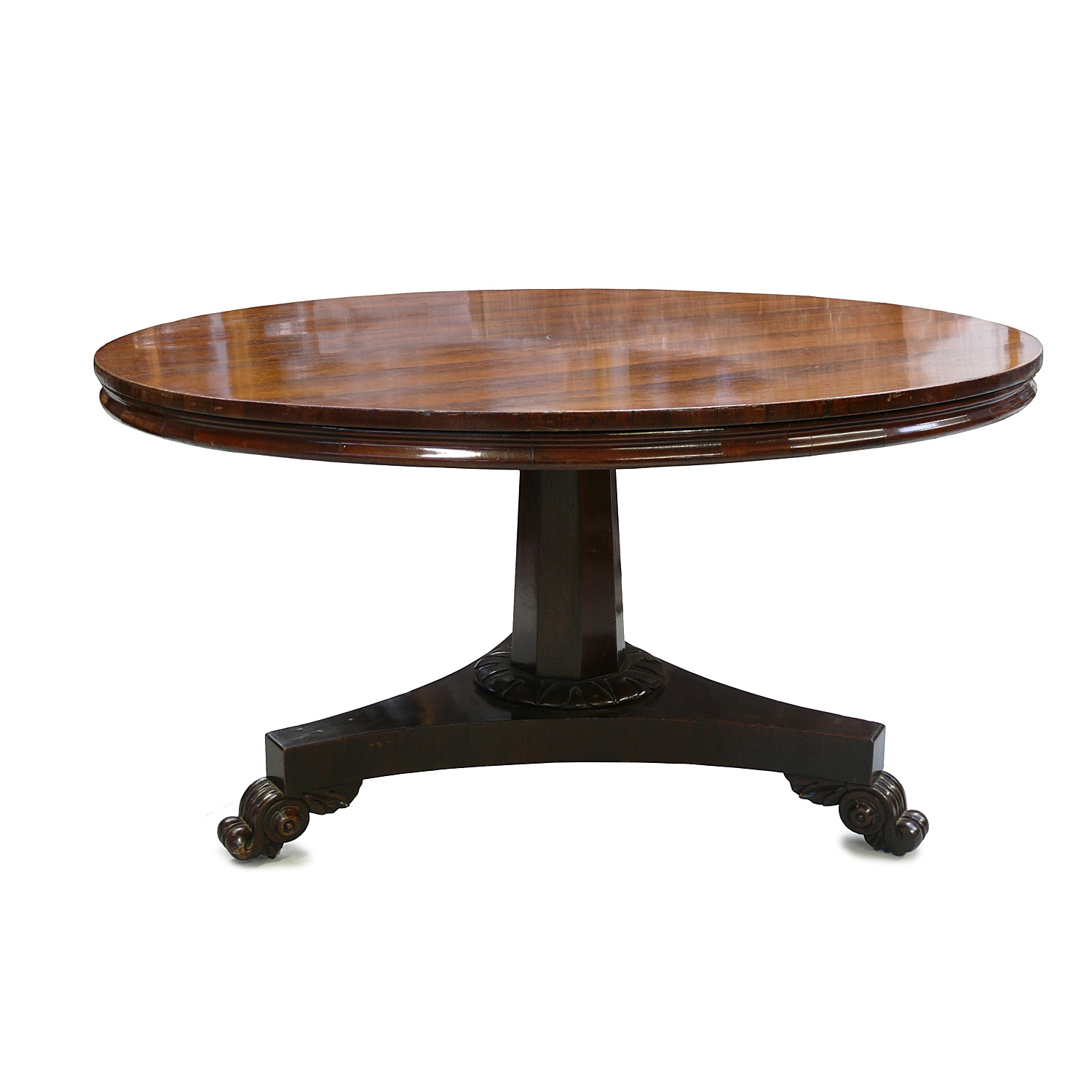 REGENCY CIRCULAR ROSEWOOD BREAKFAST TABLE 4'6/i DIAM.