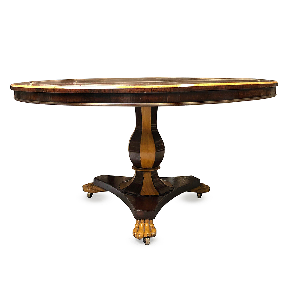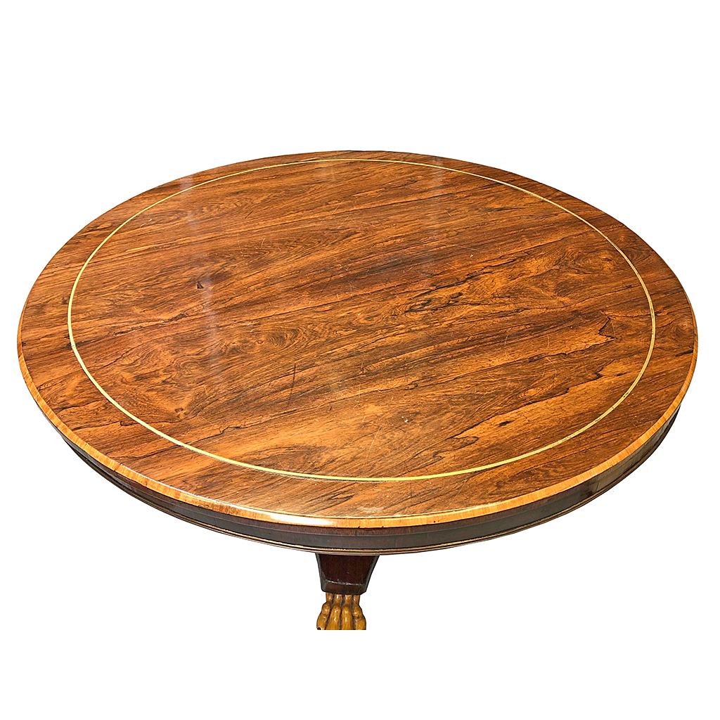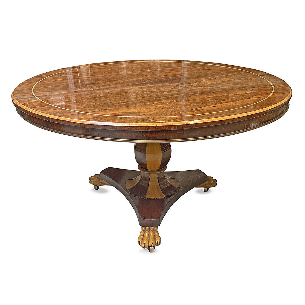 REGENCY CIRCULAR ROSEWOOD BREAKFAST TABLE TWO TONE BASE ENGLISH CIRCA 1800 78 CM HIGH 130 CM DIAM.