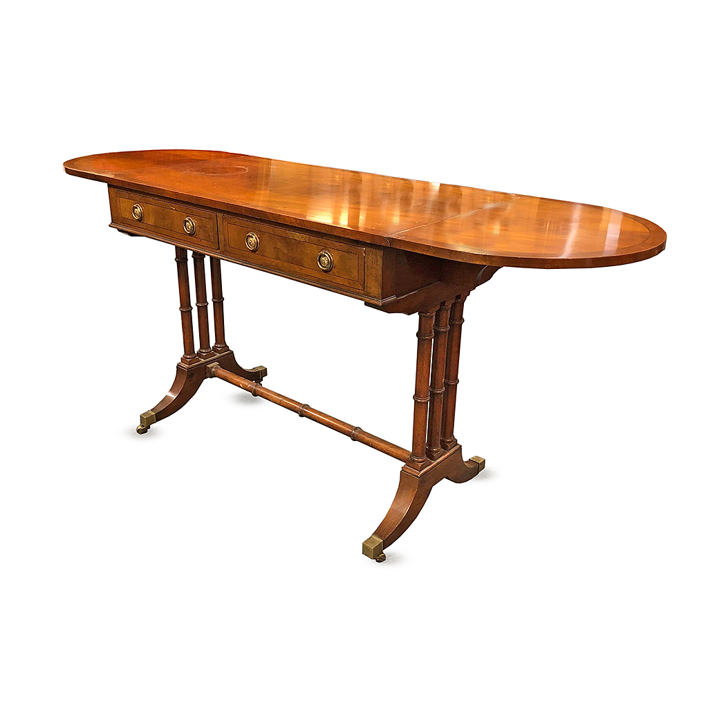 REGENCY STYLE MAHOGANY SOFA TABLE WITH FLAP ENDS 74 CM HIGH 91 CM LONG 51 CM DEEP 163 CM LONG FULLY EXTENDED