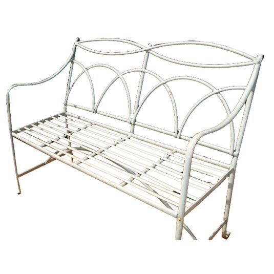 REGENCY PERIOD TWO SEAT WROUGHT IRON GARDEN BENCH 4'1/i HALF ROUND METAL