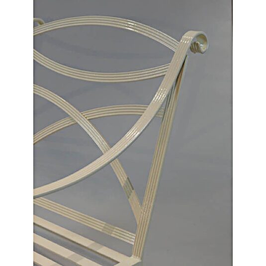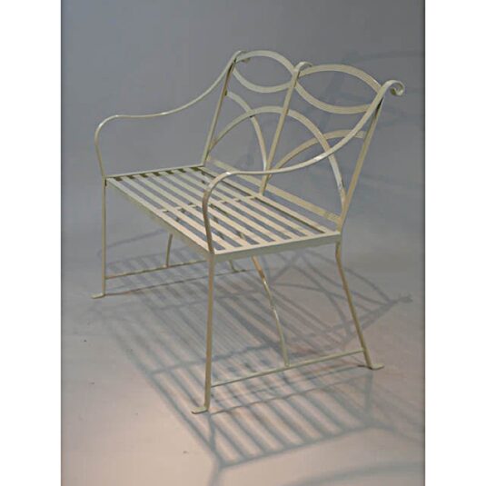 REGENCY STYLE GARDEN BENCH TWO SEATER REEDED WROUGHT IRON CREAM PAINTED 102 CM LONG 88 CM HIGH 68 CM DEEP