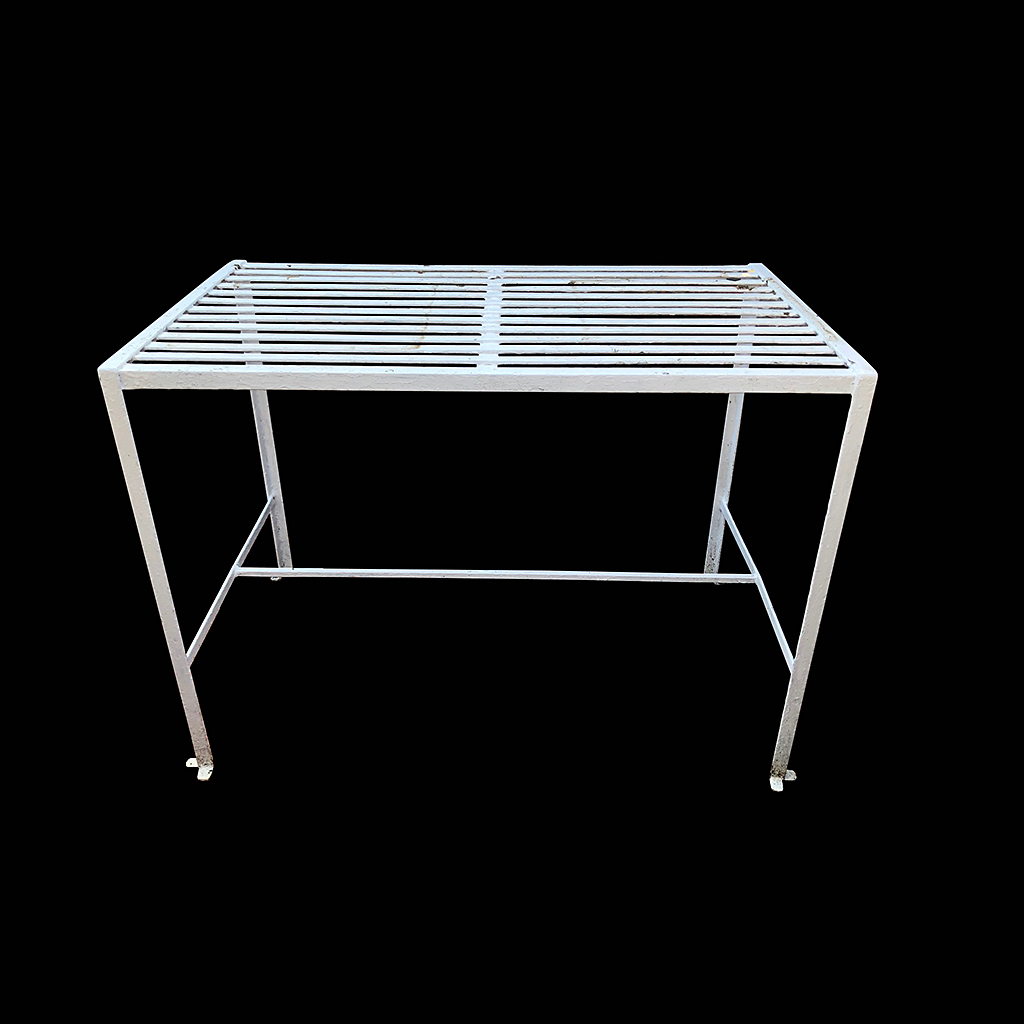 REGENCY STYLE SLATTED WROUGHT IRON GARDEN TABLE 76 CM HIGH 102 CM LONG 60 CM WIDE