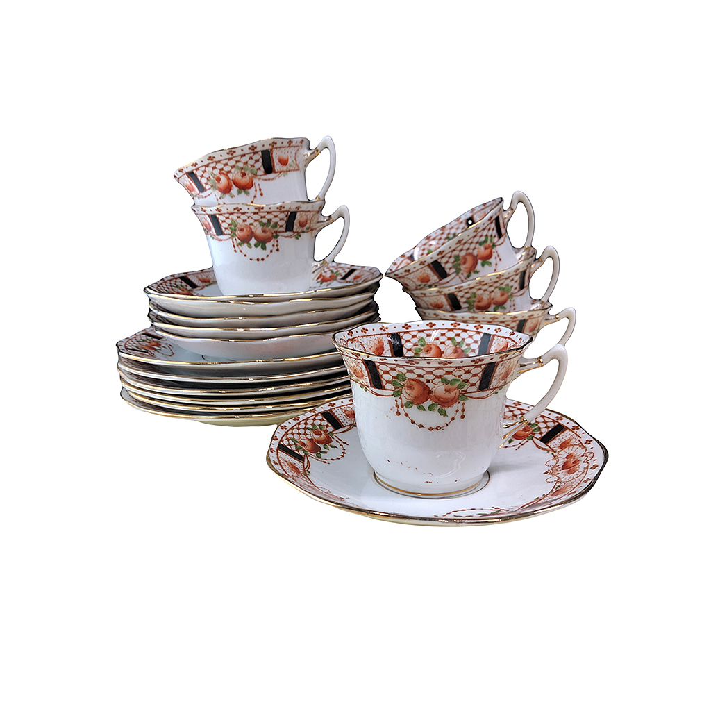 REIDS PARK PLACE ORANGE FLORAL DECORATED COFFEE SET INCLUDING 6 X COFFEE CUPS 6 X SIDE PLATES