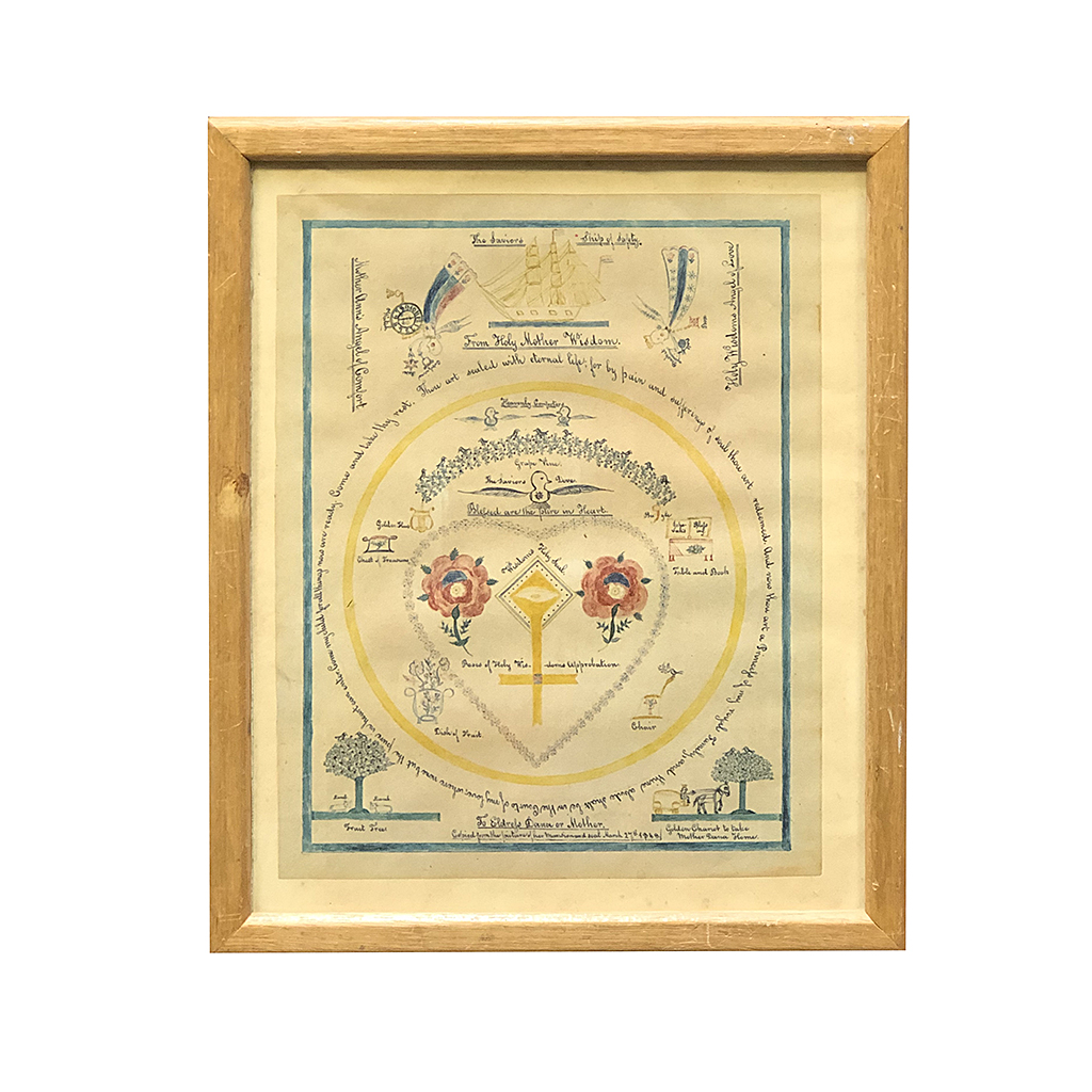RELIGIOUS PRINT "FROM HOLY MOTHER WISDOM" IN A LIGHT OAK FRAME 9" X 7"
