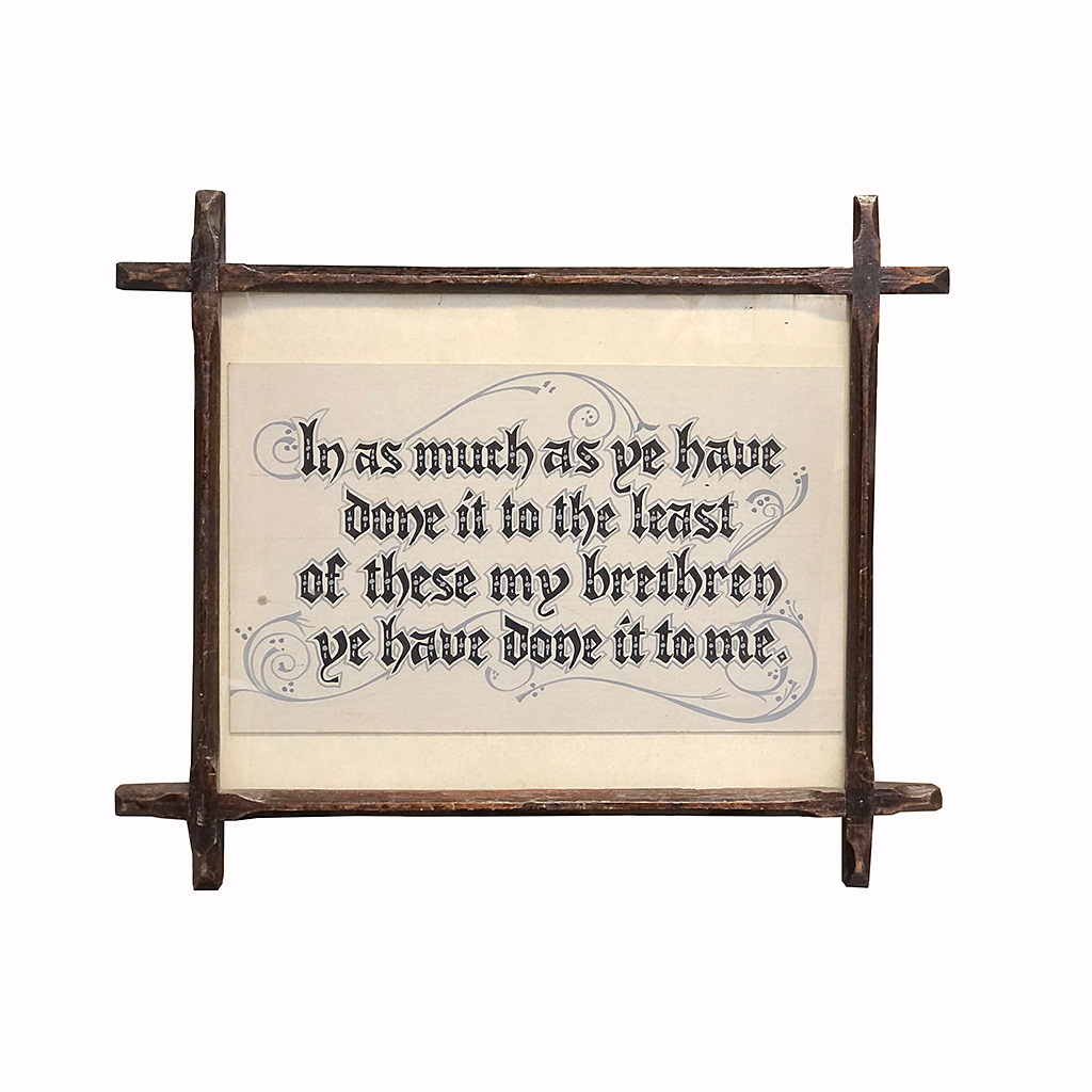 RELIGIOUS PRINT SCRIPTURE IN AS MUCH AS YE HAVE ..... IN AN OAK OXFORD FRAME 12 X 15
