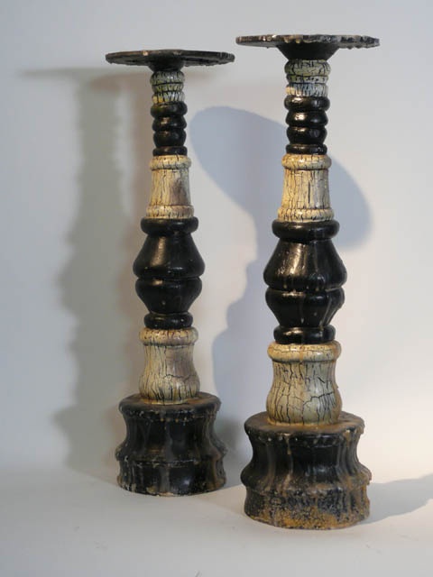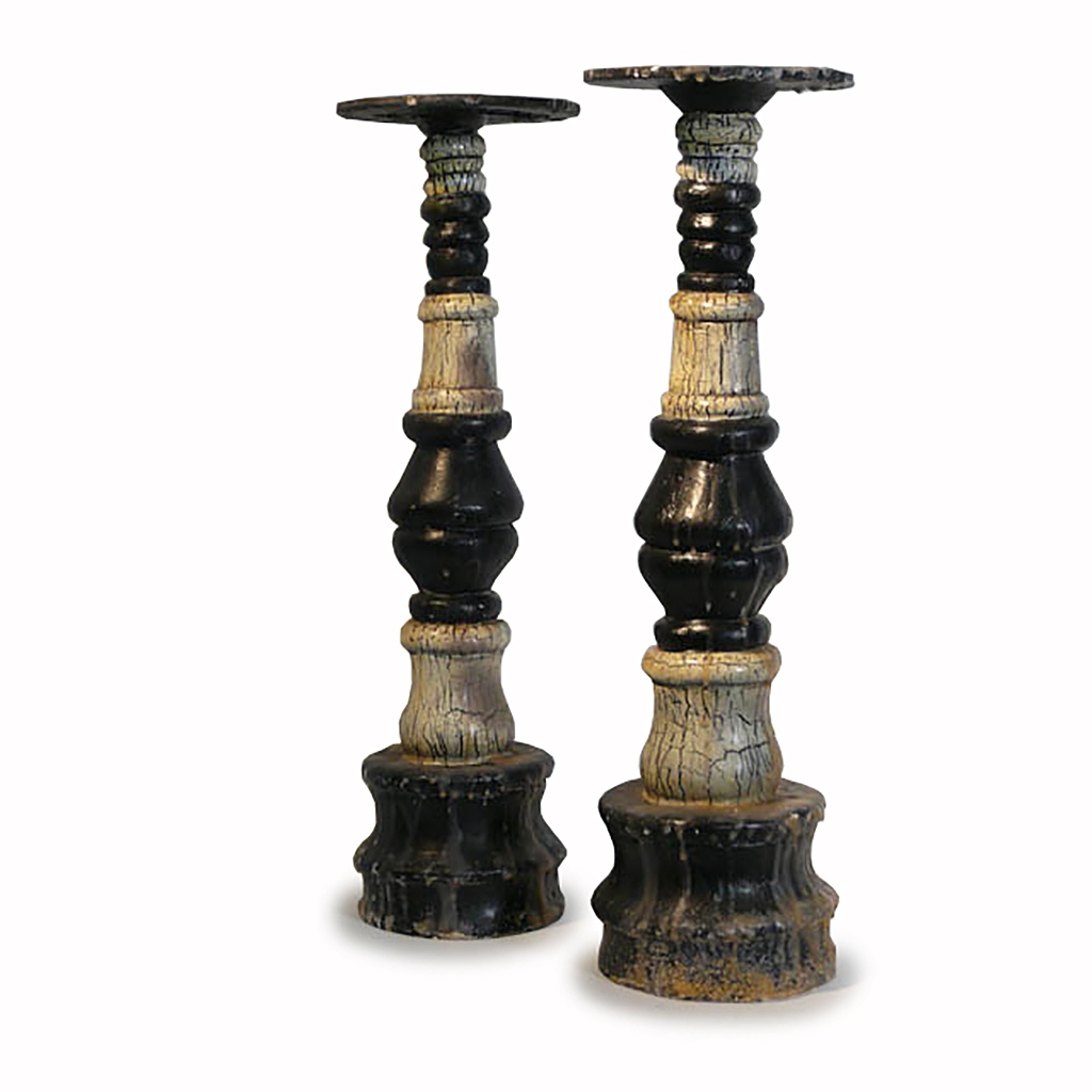 REPLICA TURNED EBONY AND BONE CANDLESTICK (X2)