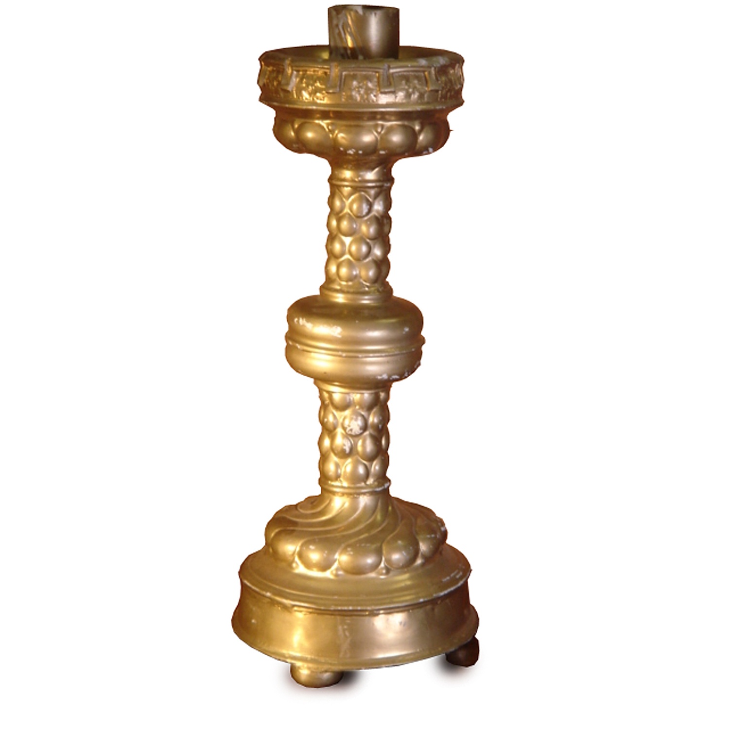 REPLICA VICTORIAN GOTHIC CASTELLATED BRASS CANDLESTICK 18/i HIGH (X2)