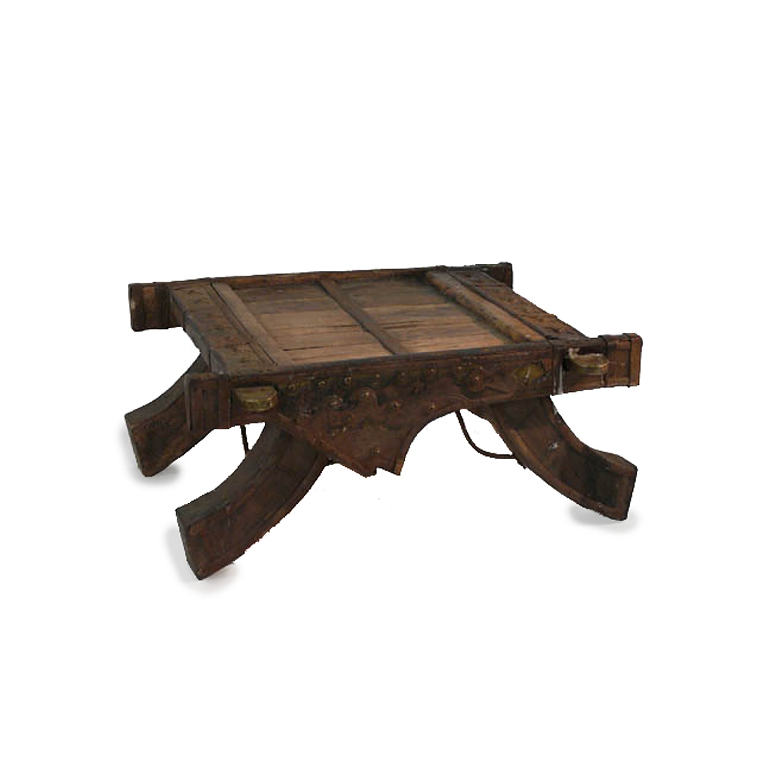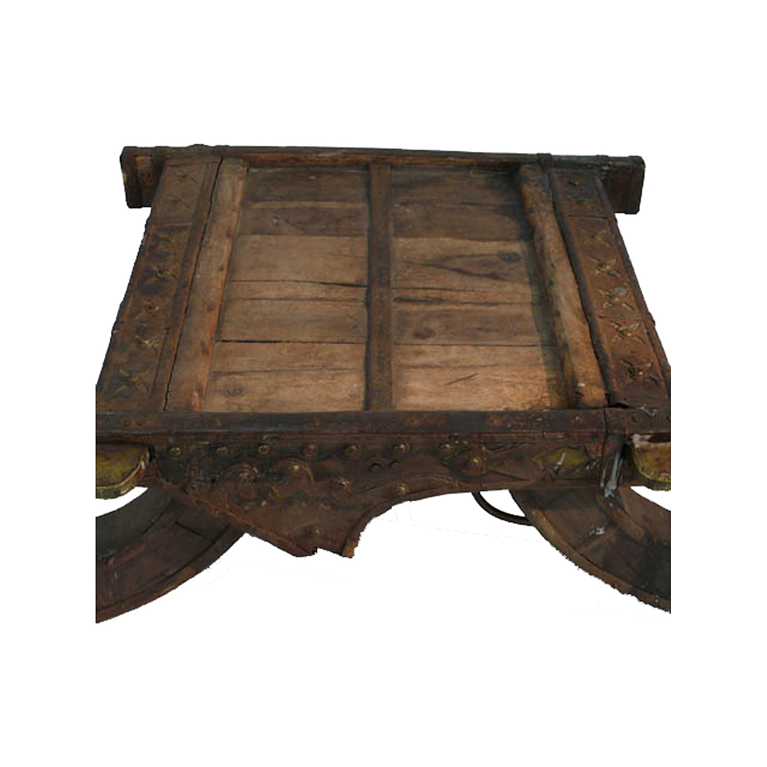 ROMAN STYLE IRON AND COPPER BOUND LOW OCCASIONAL TABLE WITH SPLAYED LEGS 29" WIDE