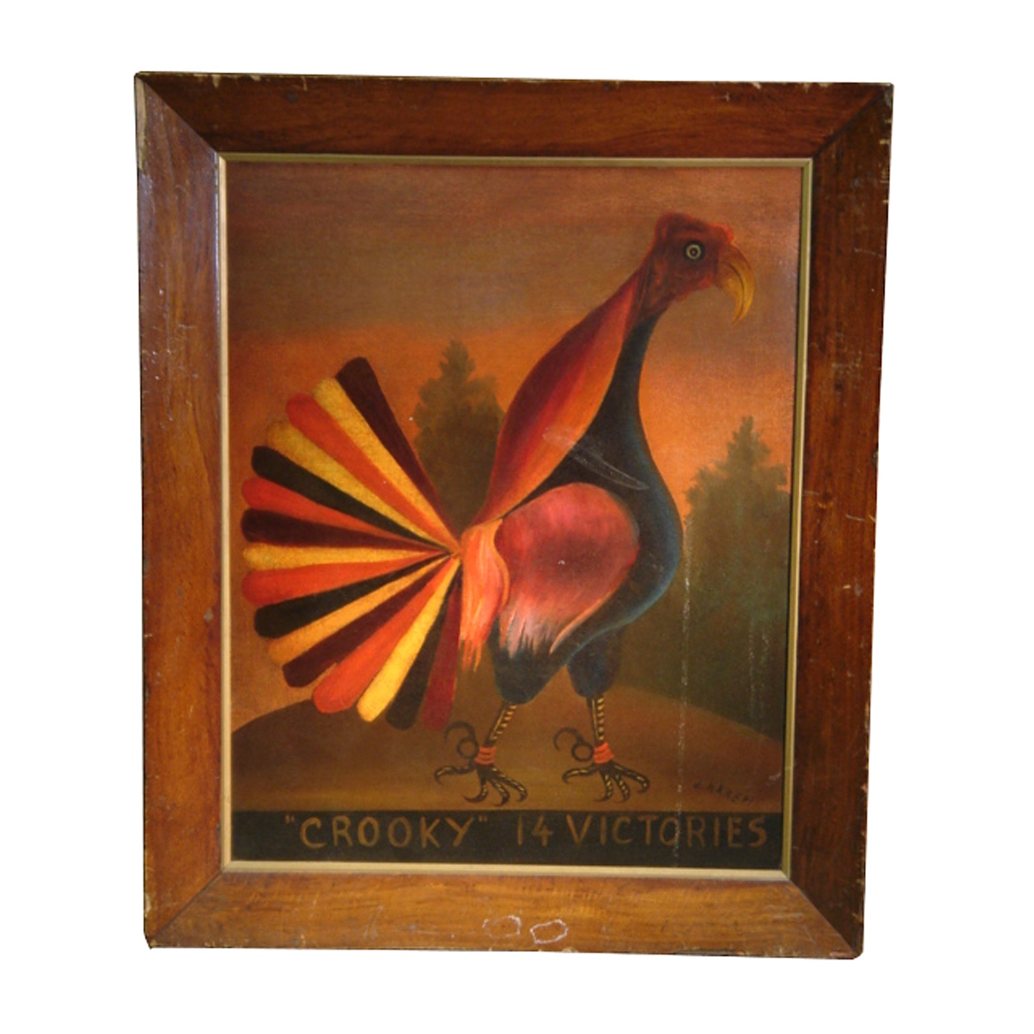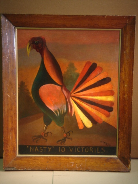 ROSEWOOD FRAMED OIL PORTRAIT FIGHTING COCKEREL (X2)