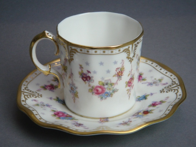 ROYAL ANTOINETTE DEMI TASSE COFFEE CUP AND SAUCER FLORAL PAT. CROWN DERBY (X22)