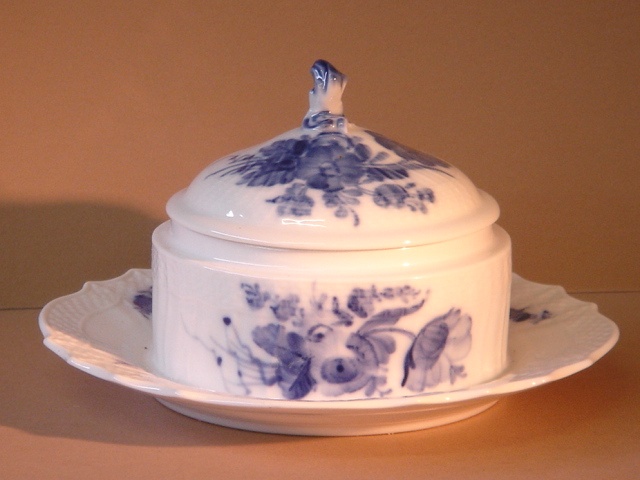 ROYAL COPENHAGEN BLUE AND WHITE BUTTER DISH AND LID PLUS FIXED SAUCER