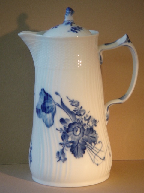 ROYAL COPENHAGEN BLUE AND WHITE CHINA CHOCOLATE POT AND LID 22 CM HIGH (X2)