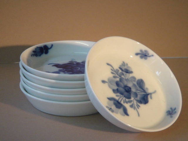 ROYAL COPENHAGEN BLUE AND WHITE CHINA TINY DISH 9 CM WIDE (X6)