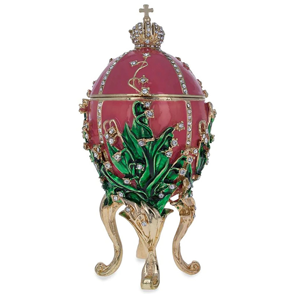 RUSSIAN FABERGE STYLE PINK ENAMEL EGG 1898 LILIES OF THE VALLEY 15.5 CM HIGH (X2)