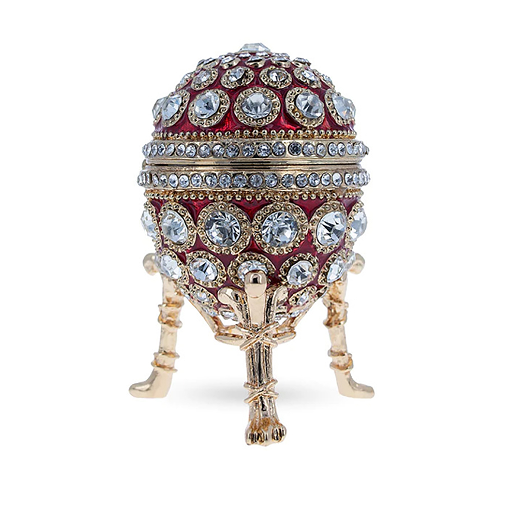 RUSSIAN FABERGE STYLE RED ENAMEL EGG WITH PASTE JEWELS 6.5 CM HIGH