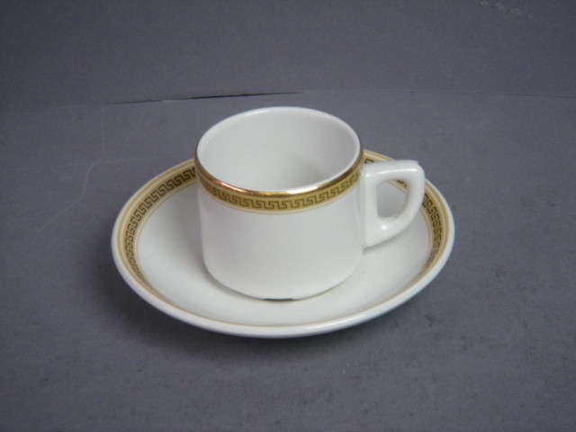 SB GREEK KEY PATTERN DEMI TASSE COFFEE CUP AND SAUCER (X24)