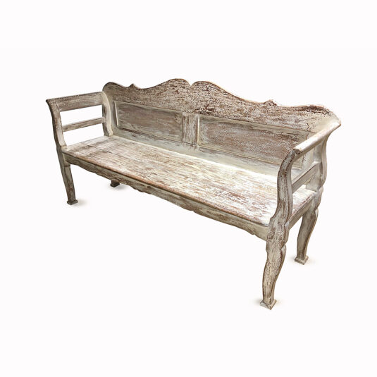 SCANDINAVIAN LIGHT WOOD BENCH / SETTLE WITH DISTRESSED WHITE FINISH 10 CM HIGH 190 CM LONG 52 CM DEEP
