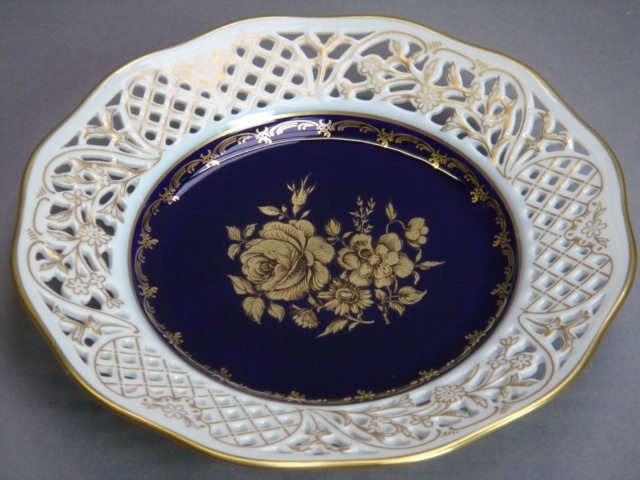 SCHUMANN COBALT DESSERT PLATE WHITE LACE EDGE 19 CM (X32)