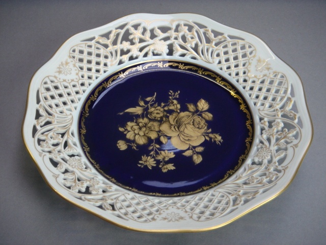 SCHUMANN COBALT DINNER PLATE WHITE LACE EDGE 26 CM (X25)