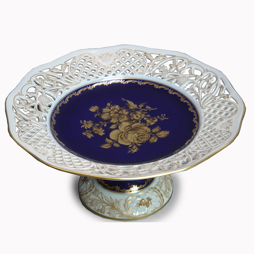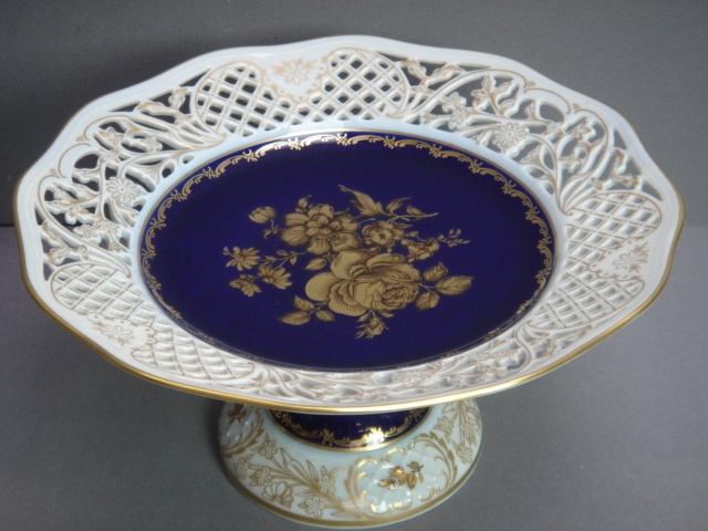 SCHUMANN COBALT LARGE TAZZA FRUIT DISH WHITE LACE EDGE 26 CM DIAM. (X4)