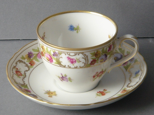 SCHUMANN FLORAL TEACUP AND SAUCER WHITE CHINA WITH FLORAL PATTERN (X32/X41)
