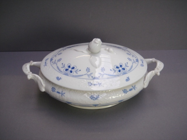 SCHUMANN GOTLAND OVAL VEGETABLE TUREEN WITH LID BLUE AND WHITE FLORAL (X6)